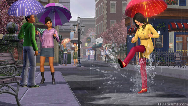 Аааа, я наслаждаюсь временами года в симс жизни))) так здорово! Дожила пока что только до зимы))))) но не все еще узнала и распробовала, чуть чуть там, чуть чуть сям))))) Первый осенний дождь! Зимние развлечения в праздник)))