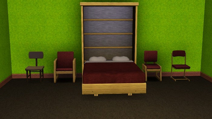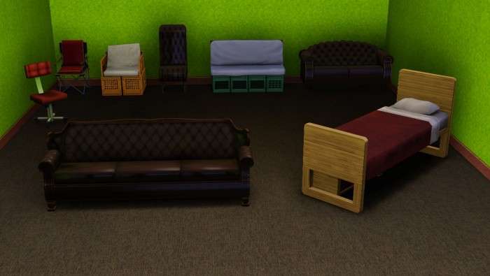 Понравились все новые объекты, кроме складной кровати. Стараюсь в общежитии успеть занять обычную. Жалко симов, такой риск для них - просто поспать на такой страшной кровати.
