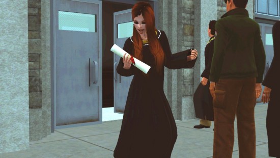 Вторая и не маловажная выгода касается карьеры. С дипломом ваши персонажи смогут начать карьеру с более высокого уровня и с высшей зарплатой, нежели «необразованные» симы. Конечно, на количество благ напрямую влияет оценка в дипломе: отличники будут гораздо успешнее продвигаться по карьерной лестнице (начиная карьеру с четвертого уровня), нежели троечники. Всего существует 6 видов дипломов, каждый из которых помогает персонажу продвинуться в определенных карьерах: