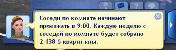 Максимальное количество всех симов, проживающих на лоте, равно 8. Поэтому количество соседей, которых вы можете подселить, напрямую зависит от размера вашего семейства. Соседи начинают прибывать в 9:00. Сумма, которую соседи платят за проживание в доме, - это квартплата. Она зависит от цены вашего дома. Квартплату соседи не платят сами, а отдают вам раз в неделю. По умолчанию, соседями являются НПС из текущего городка. Но вы можете пригласить и своего друга. Чтобы пригласить своего друга во время общения с ним нужно выбрать опцию: "Попросить стать соседом по комнате"
