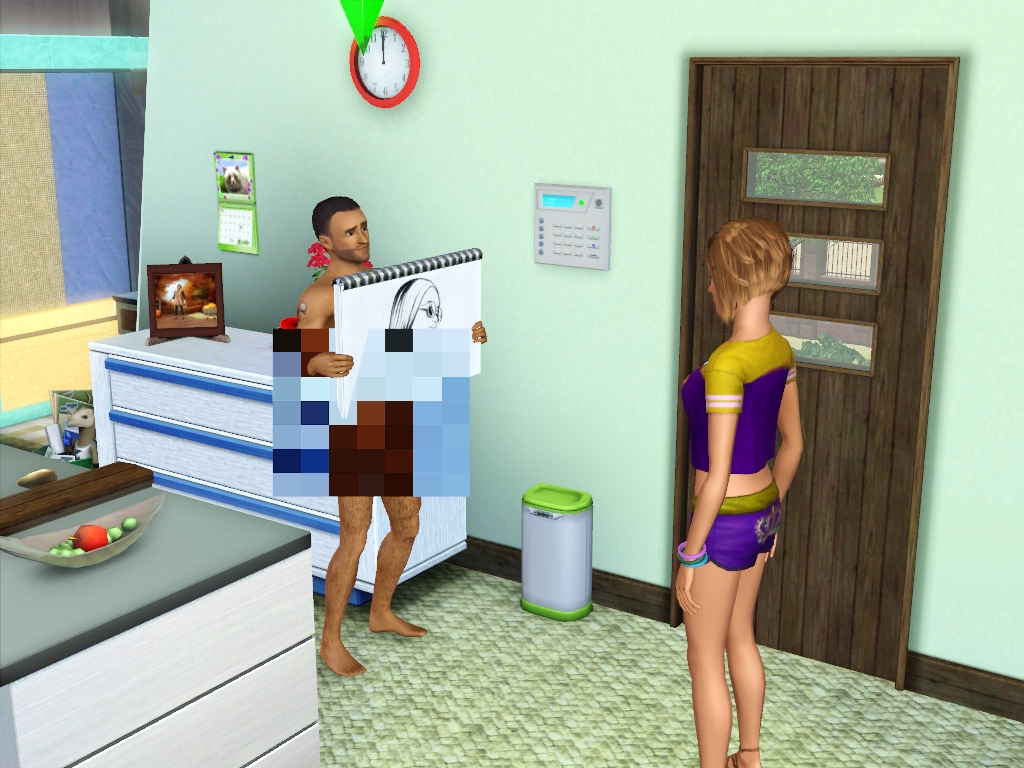 Всплыл ещё такой забавный баг или может прикол - не уверен. Вобщем с альбомом для рисования доступно такое действие как "просить позировать обнаженным для натуры" или как-то так. На практике это выглядело несколько...неожиданно