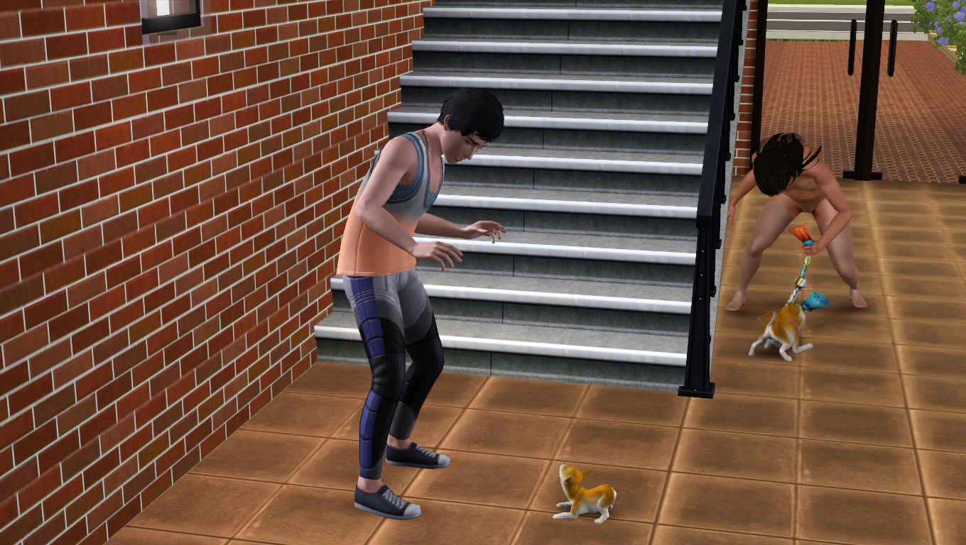 После очередного вылета из семьи, я решила на плюнуть на династию на пару симских дней (пусть доживают то, что утратили из-за вылета). Семья состоит из Мужа, беременной жены, плантсына, дочки и собаки. Так как я недавно в Сансете, решила опробовать Мортимера Гота. И, оказывается, моя семья решила у себя дома устроить городской приют Состоящий из одного щеночка - Луны.